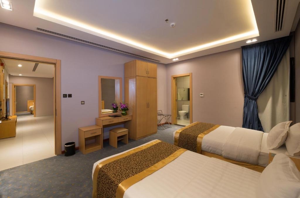 تفاصيل الغرفة يحتوي هذا الجناح المكيّف على غرفتي نوم و3 حمّامات، ويتكون من غرفة معيشة ومنطقة جلوس، فيما يشمل الجناح مطبخاً صغيراً مزوداً بثلاجة وأدوات مطبخ، حيث يمكن الطهي وتخزين الطعام فيه، كما يوفر الجناح الواسع خزانة ملابس وصندوق ودائع آمن وغلاية كهربائية وأرضية من البلاط، بالإضافة إلى تلفزيون بشاشة مسطحة مع قنوات فضائية، فيما توفر الوحدة 4 أسرّة.