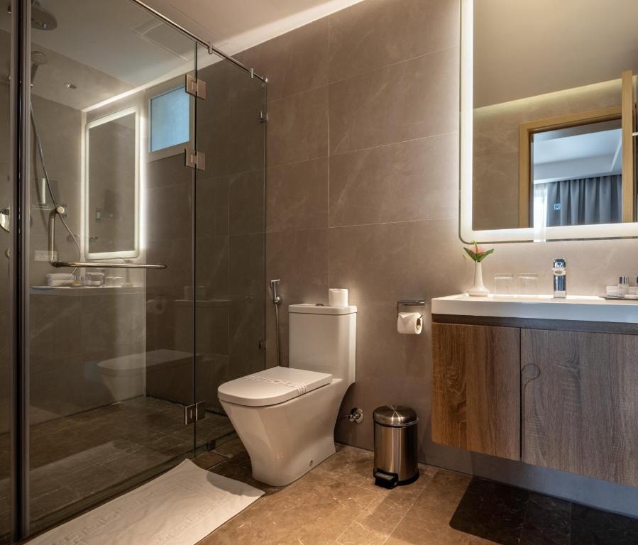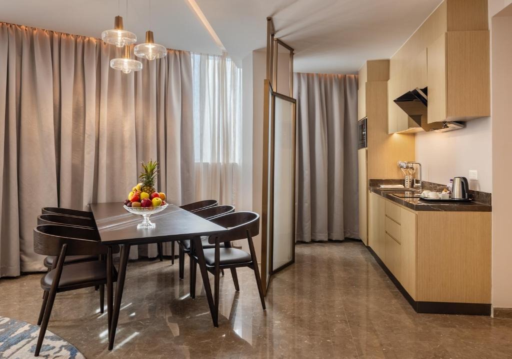 يضم هذا الجناح الواسع غرفة معيشة واحدة وغرفتي نوم منفصلتين، بالإضافة إلى حمّامين مزودين بدش ولوازم استحمام مجاناً. ويمكن للضيوف إعداد وجبات الطعام في المطبخ المجهز بالكامل، والذي يشتمل على ثلاجة وأدوات مطبخ وغلاية كهربائية. ويوفر الجناح المكيّف تلفزيون بشاشة مسطحة مع قنوات الكابل وجدراناً عازلة للصوت وميني بار ومنطقة جلوس، كما يتمتع بإطلالة على ساحة الفناء الداخلي. وتتوفر 3 أسرّة في الوحدة.