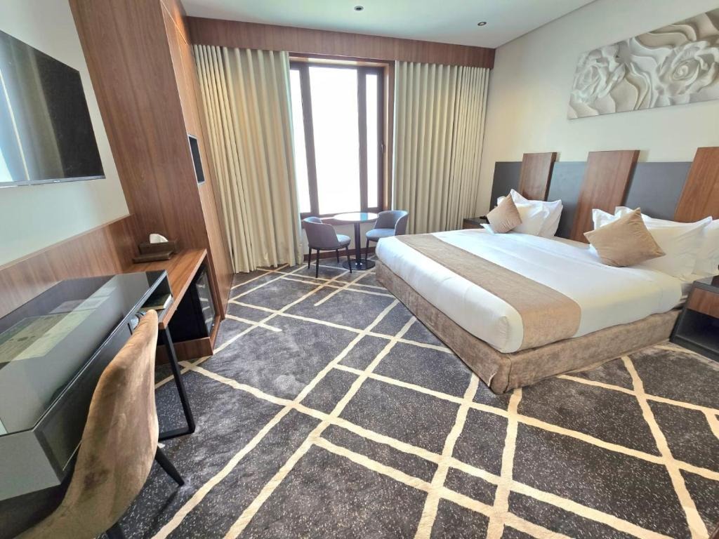 تفاصيل الغرفة تشمل هذه الغرفة المزدوجة المكيّفة تلفزيون بشاشة مسطحة مع قنوات الكابل وحمّاماً خاصاً، بالإضافة إلى شرفة تتمتع بإطلالات على المدينة، وتضم هذه الوحدة سريراً واحداً مزدوج.