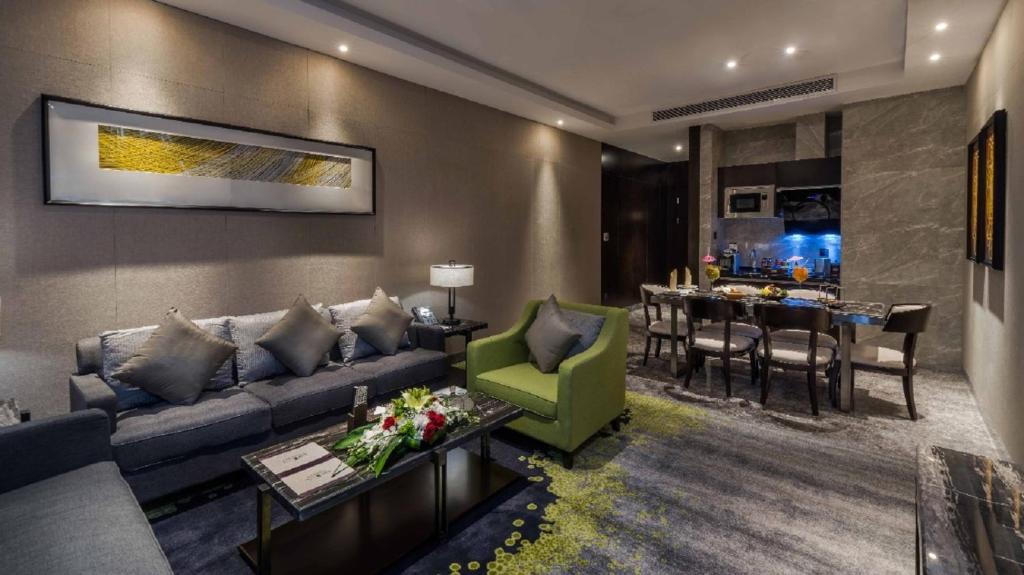 تفاصيل الغرفة يضم هذا الجناح الواسع غرفة معيشة واحدة وغرفة نوم منفصلة واحدة وحماماً واحداً مزوداً بدش ولوازم استحمام مجاناً. ويتوفر مطبخ صغير مجهز بموقد مسطح وميكروويف للطهي وتخزين الطعام في الجناح. ويوفر الجناح المكيّف تلفزيون بشاشة مسطحة مع قنوات فضائية وجدراناً عازلة للصوت وميني بار وماكينة صنع القهوة، كما يتمتع بإطلالات على المدينة. ويتوفر سرير واحد في الوحدة.