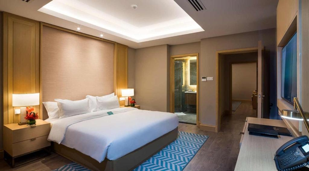 تفاصيل الغرفة يشمل هذا الجناح حمّاماً خاصاً مزوداً بدش ومجفف للشعر، بالإضافة إلى لوازم استحمام مجاناً، ويتوفر للضيوف في المطبخ المجهز جيداً ثلاجة وأدوات مطبخ وفرن وميكروويف، كما يتميز هذا الجناح بأنه مكيّف، ويوفر منطقة جلوس مجهزة بتلفزيون بشاشة مسطحة وميني بار وآلة لتحضير الشاي والقهوة ومنطقة لتناول الطعام وخزانة ملابس، فيما تحتوي الوحدة على سرير واحد.