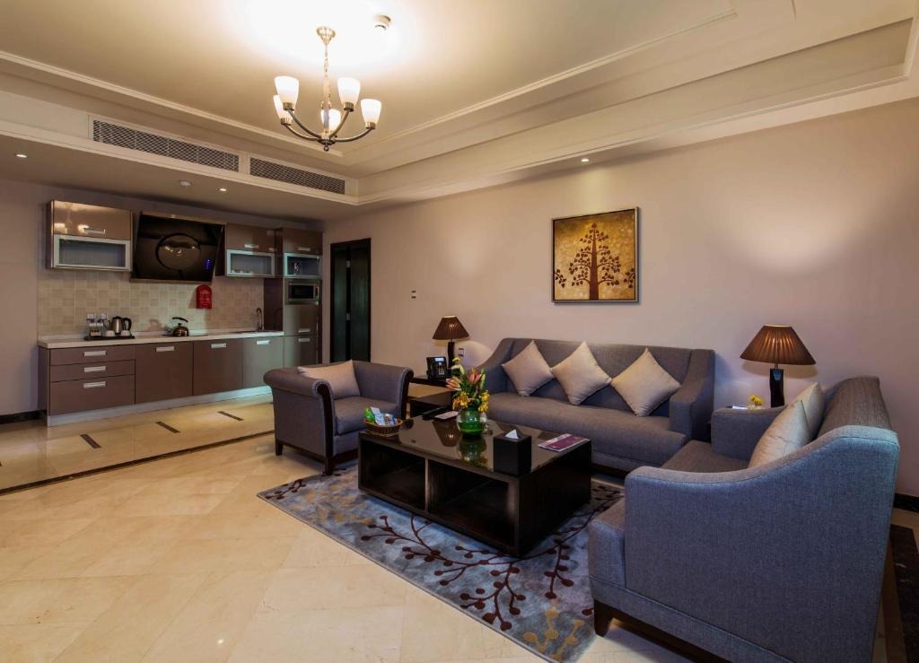 تم تجهيز هذا الجناح المكيّف الكبير بمنطقة جلوس وتلفزيون بشاشة مسطحة، كما يحتوي المطبخ الصغير على ثلاجة وميكروويف وموقد، فيما يتميز الحمّام بدش ولوازم الاستحمام مجاناً.