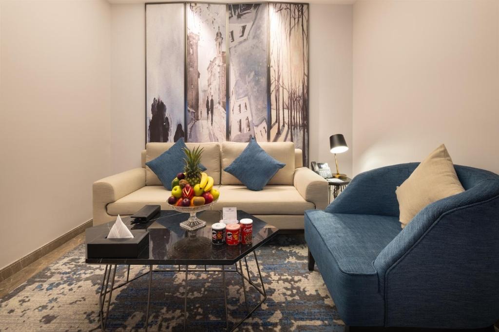 تفاصيل الغرفة يتكون هذا الجناح من غرفة معيشة واحدة وغرفة نوم منفصلة واحدة وحمّام واحد مزود بدش ولوازم استحمام مجاناً، كما يوفر الجناح المكيّف تلفزيون بشاشة مسطحة مع قنوات الكابل وجدراناً عازلة للصوت وميني بار ومنطقة جلوس، بالإضافة إلى إطلالة على ساحة فناء داخلي، فيما تضم الوحدة سريراً واحداً.