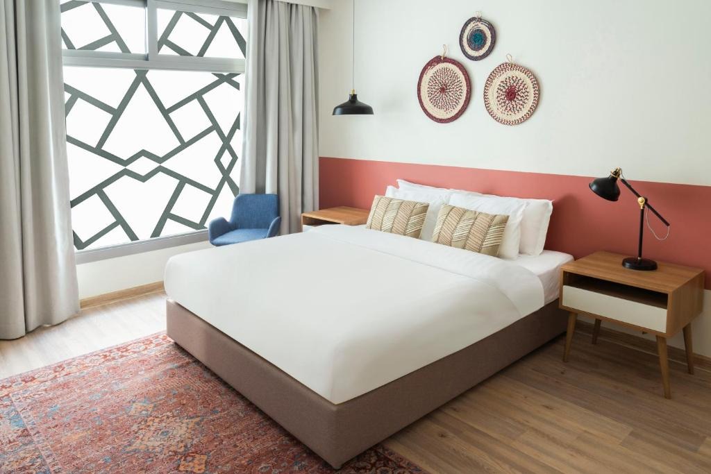 تفاصيل الغرفة يضم الجناح حمّاماً خاصاً مجهزاً جيداً مع حوض استحمام ودش وبيديت ومجفف للشعر ونعال. كما يضم المطبخ الصغير ثلاجة وأدوات مطبخ وميكروويف، ويتميز هذا الجناح الواسع بأنه مكيّف، كما يوفر غسالة ملابس وجدراناً عازلة للصوت وآلة لتحضير الشاي والقهوة، بالإضافة إلى تلفزيون بشاشة مسطحة مع قنوات الكابل، فيما تحتوي الوحدة على سرير واحد.