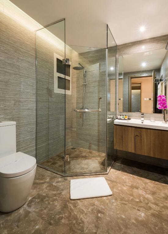 تفاصيل الغرفة تضم هذه الشقة غرفة معيشة واحدة، وغرفتي نوم منفصلتين، بالإضافة إلى حمّامين مزوّدين بدش ولوازم استحمام مجانية. ويشتمل المطبخ المجهّز جيدًا على ثلاجة، وأدوات مطبخ، وفرن، وميكروويف. كما تتميّز الشقة بتكييف هواء، وتوفّر ميني بار، وآلة لتحضير الشاي والقهوة، ومنطقة لتناول الطعام، وتلفزيونًا بشاشة مسطّحة مع قنوات الكابل. وتضم الوحدة ثلاثة أسرّة.
