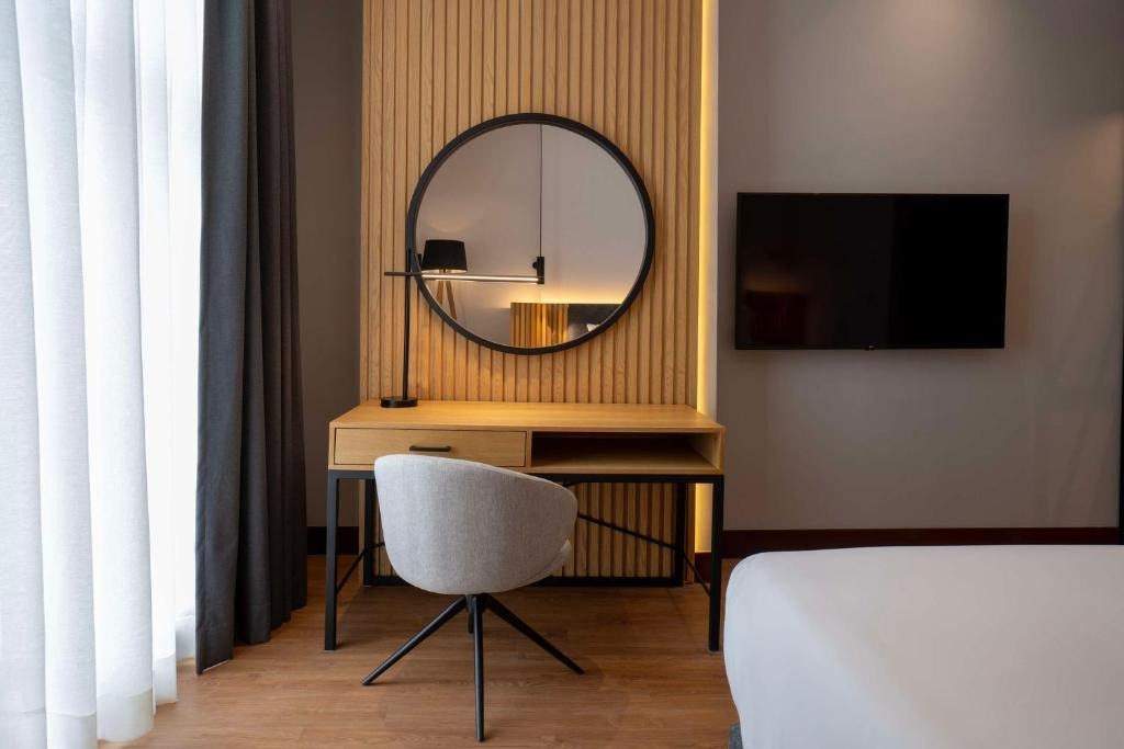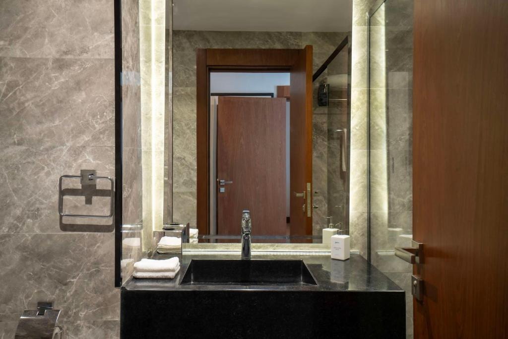 تفاصيل الغرفة تتميز الغرفة المزدوجة الواسعة بأنها مكيّفة، وتوفر مدخلاً خاصاً، بالإضافة إلى حمّام خاص مزود بمقصورة دش ومجفف شعر، كما توفر الغرفة المزدوجة تلفزيون بشاشة مسطحة وميني بار وآلة لتحضير الشاي والقهوة وخزانة ملابس وإطلالات على المدينة، فيما تحتوي الوحدة على سريرين.