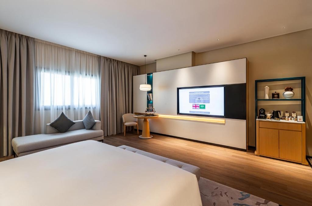 تفاصيل الغرفة تتميز الغرفة المزدوجة الواسعة بتكييف هواء، وماكينة لتحضير الشاي والقهوة، بالإضافة إلى حمّام خاص يضم دشًا وبيديه. كما تحتوي هذه الغرفة المزدوجة على أريكة، وتلفزيون بشاشة مسطحة، وصندوق أمانات، وأرضية مغطاة بالسجاد. تحتوي الوحدة على سرير واحد.